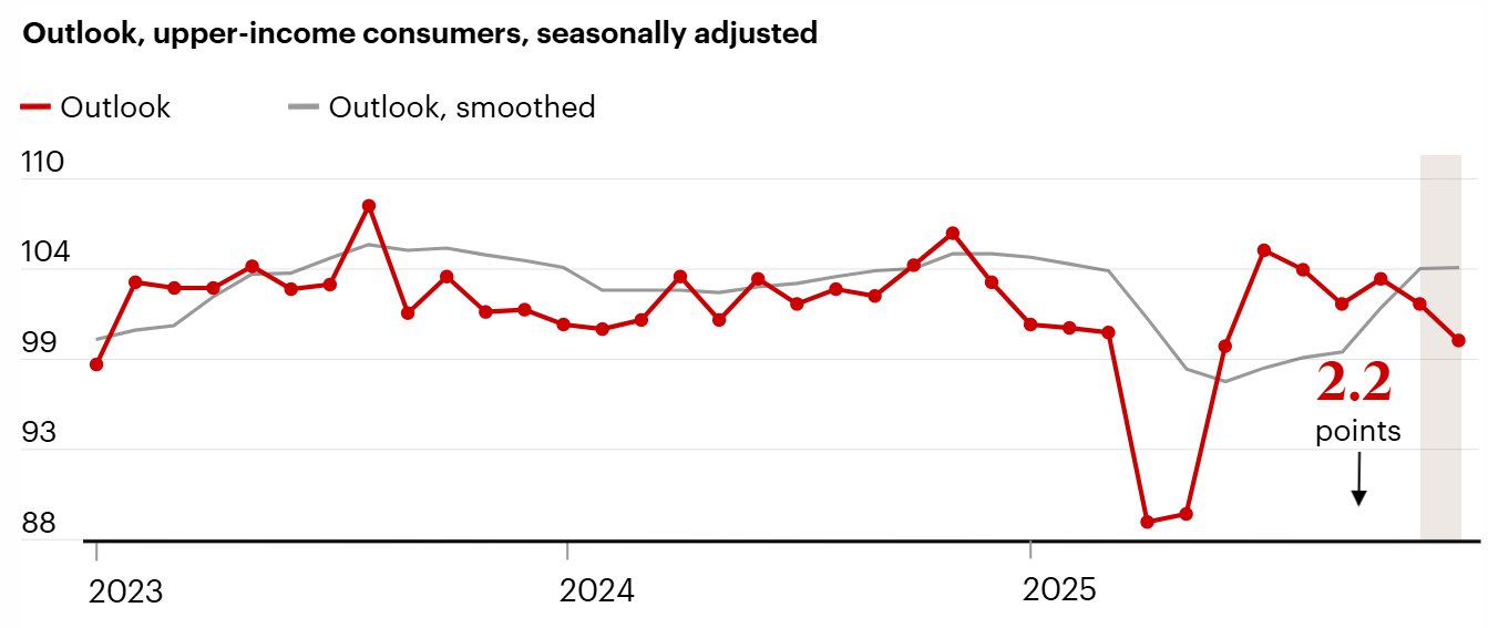 Consumers, however, are showing strain. The Conference Board reported that its Consumer Confidence Index fell for the fifth straight month in December, dropping to 89.1 from November’s upwardly revised 92.9 and missing expectations of around 91.5. Four of the five components declined, and consumers’ net views on current business conditions turned negative for the first time since September 2024. Concerns around employment conditions and household income expectations weighed on sentiment. This deterioration in confidence stands in contrast to the strength in GDP, highlighting a growing disconnect between aggregate economic output and how households feel about their own financial security.