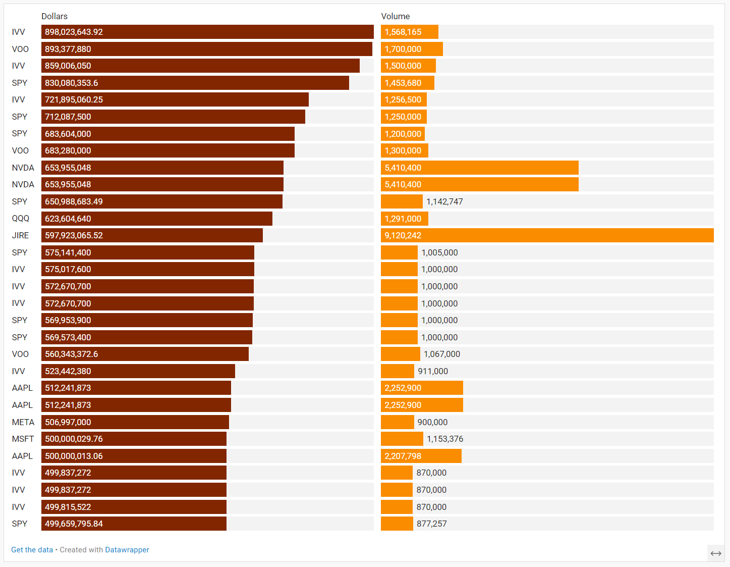 Largest Individual Trades by Dollars Transacted