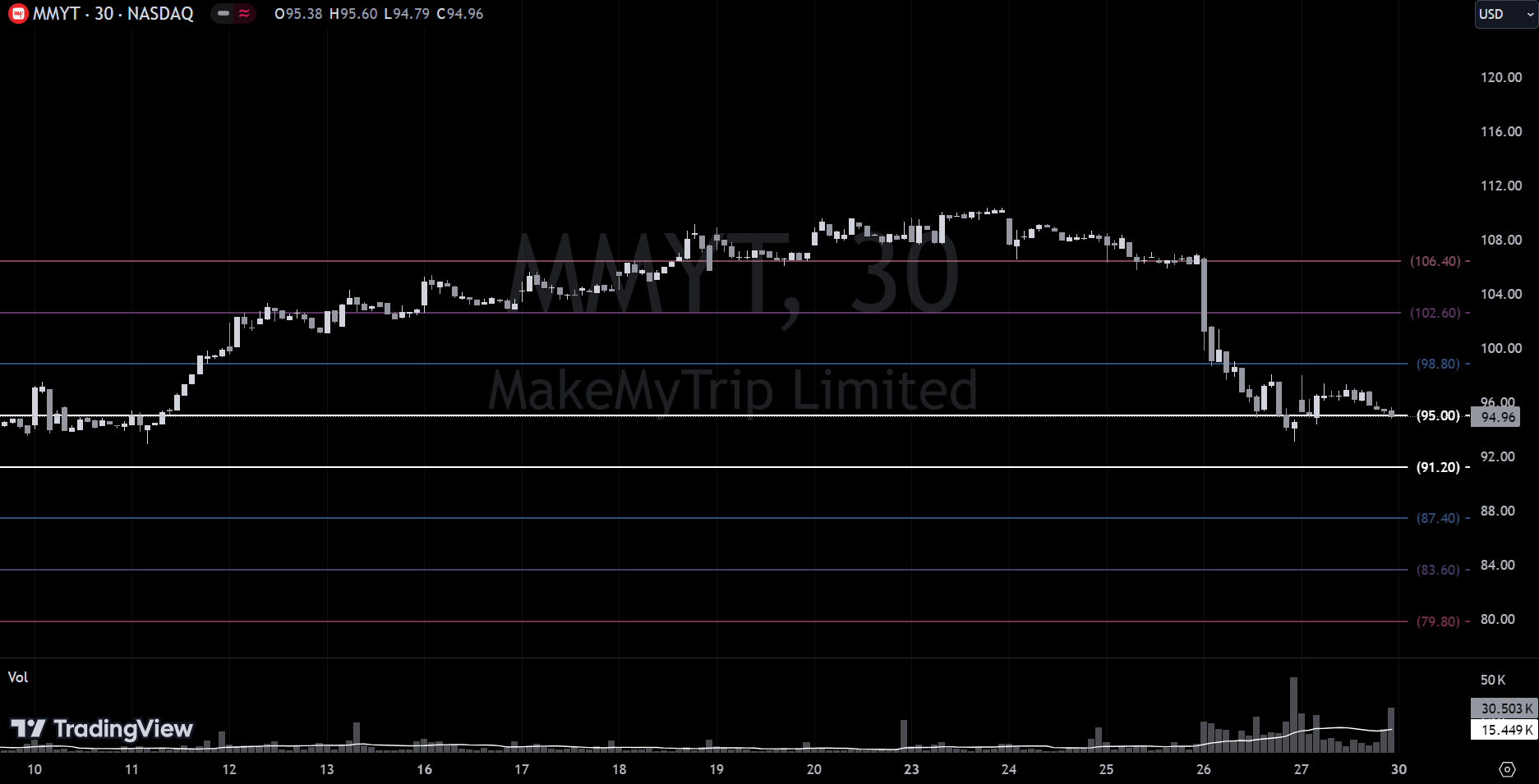 KMX:⭐ triggered short, +2.51%, T1 met and runners stopped.