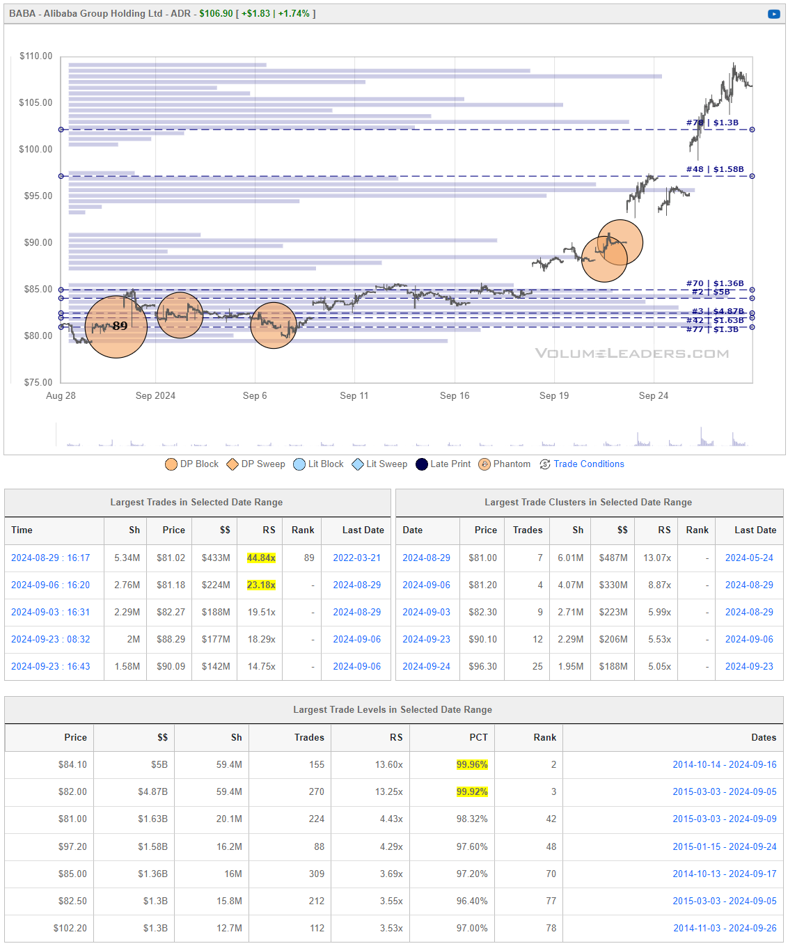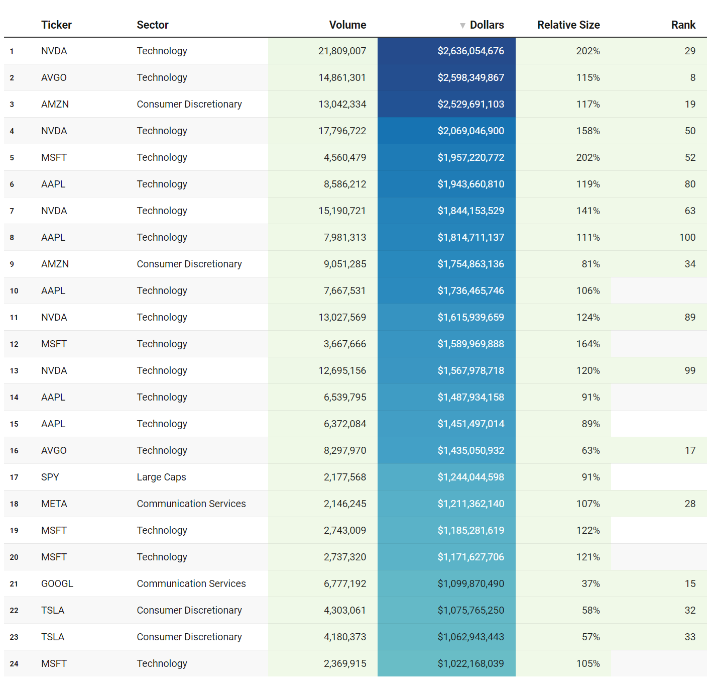 Tickers that printed a trade worth at least $1B last week get a special shout-out… Welcome to the club. Subs should login to VolumeLeaders.com to get the exact trade price and relevant institutional levels around the trade - these are massive commitments by institutions that should not be ignored.