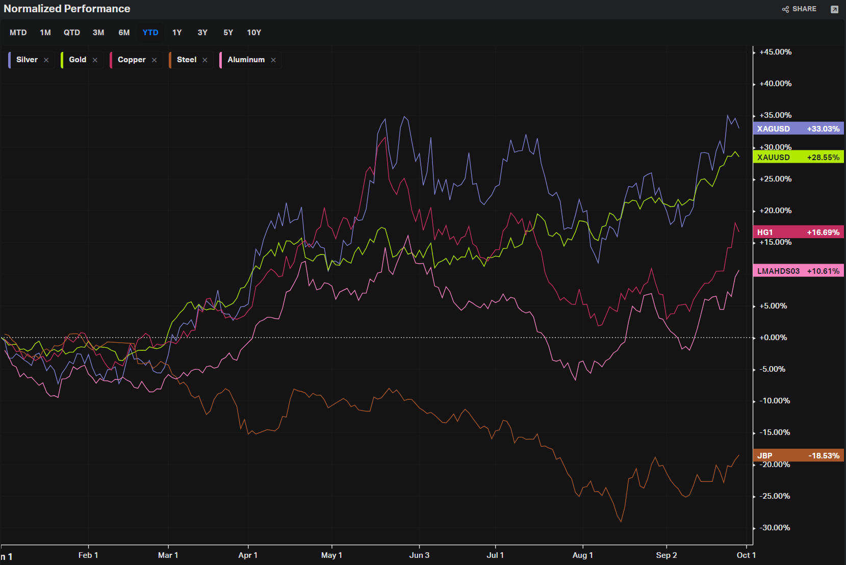 Overall, the snapshot indicates a mixed but dynamic market landscape with significant movements in technology and commodities sectors, alongside varied performances across global markets.