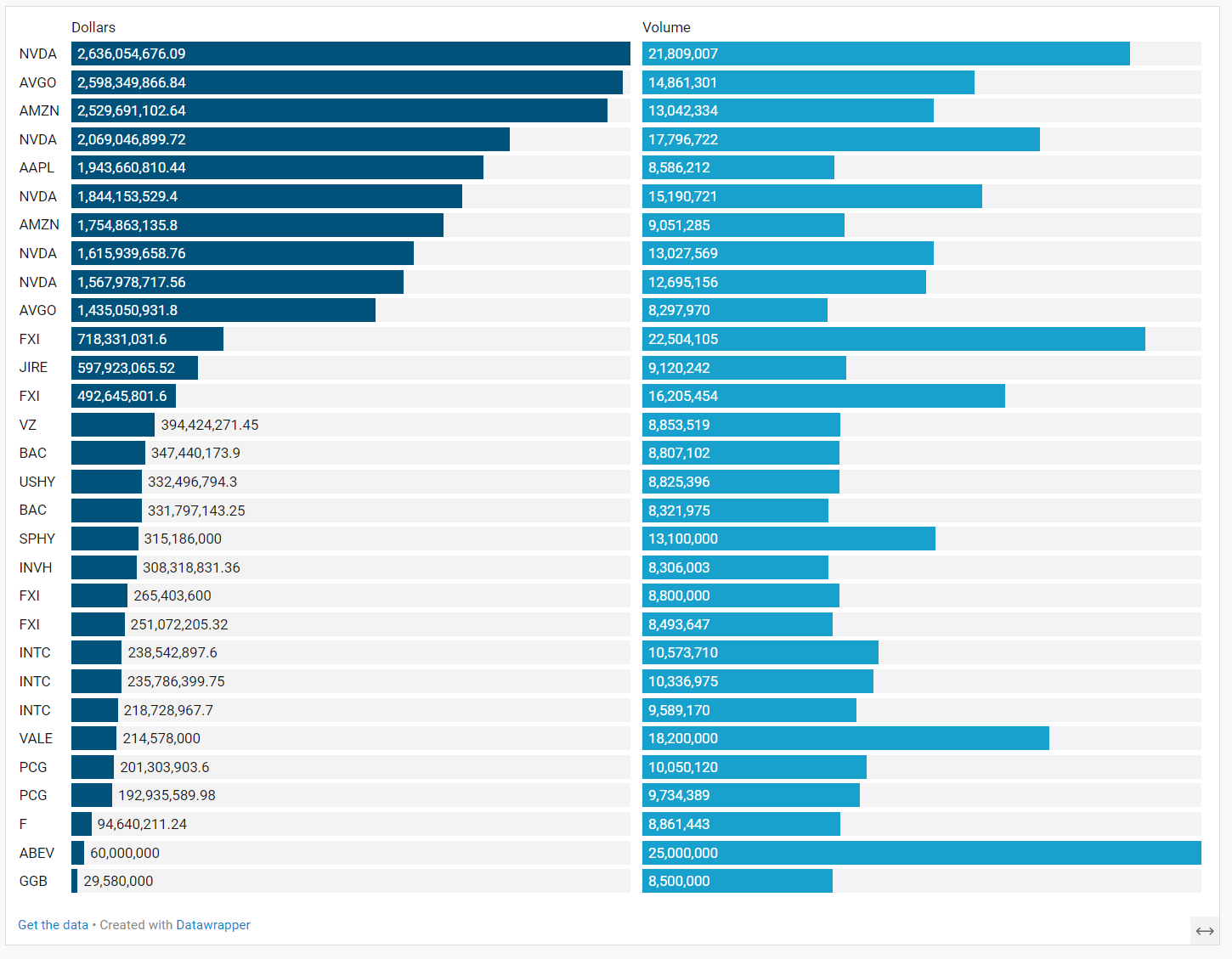 Top Aggregate Dollars Transacted by Ticker