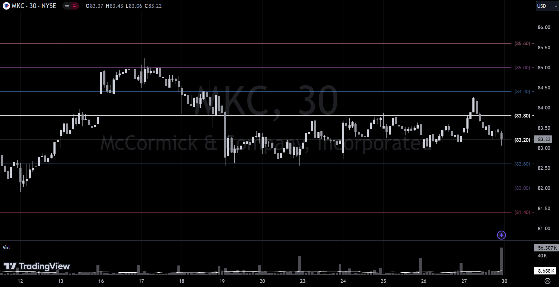 HSY:⭐ triggered short, +1.23%, T1 met and runners stopped.