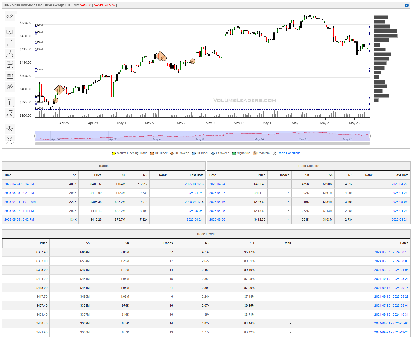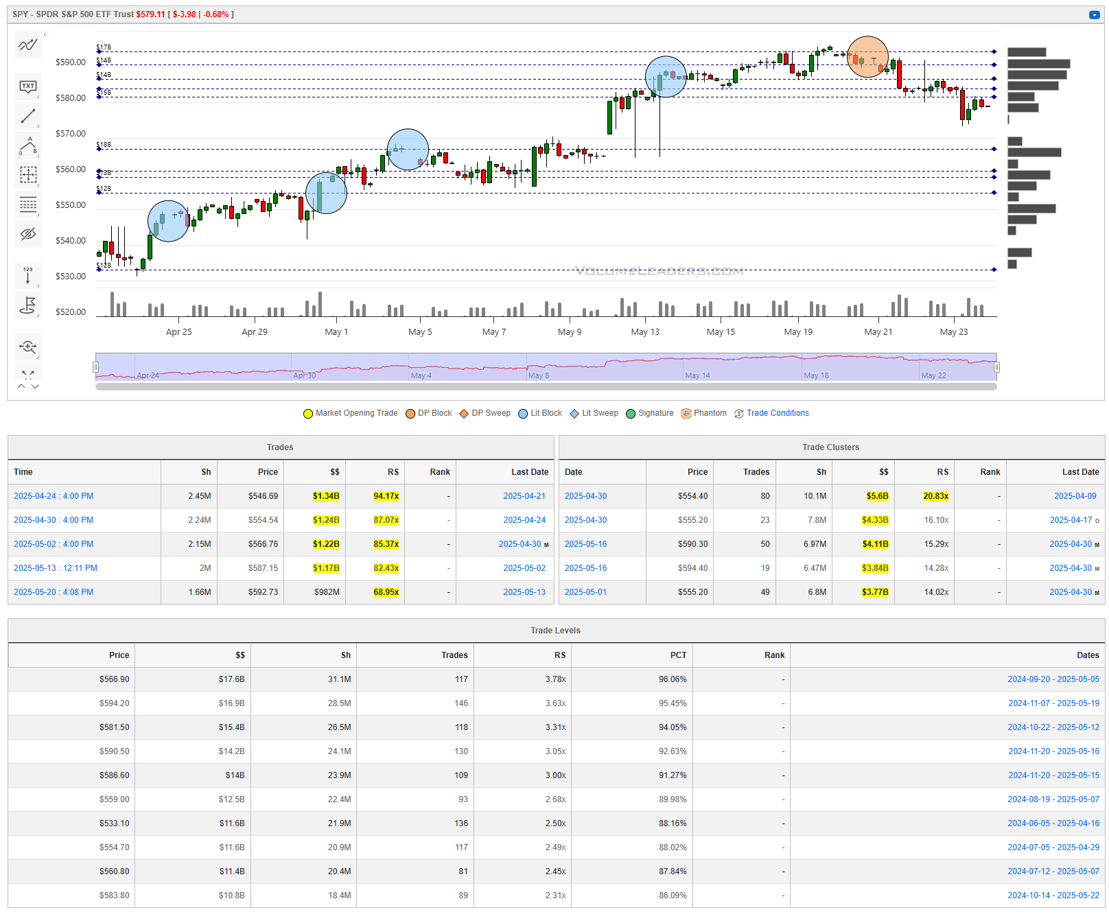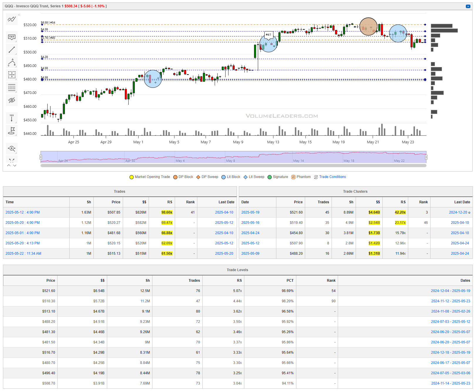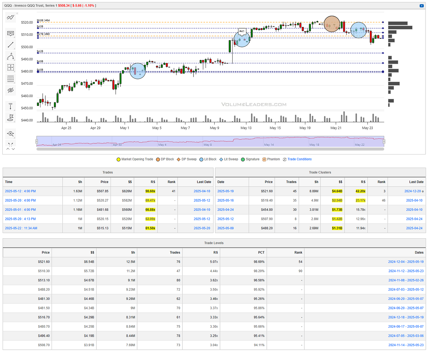 Levels from the VolumeLeaders.com platform can help you formulate trades theses about: