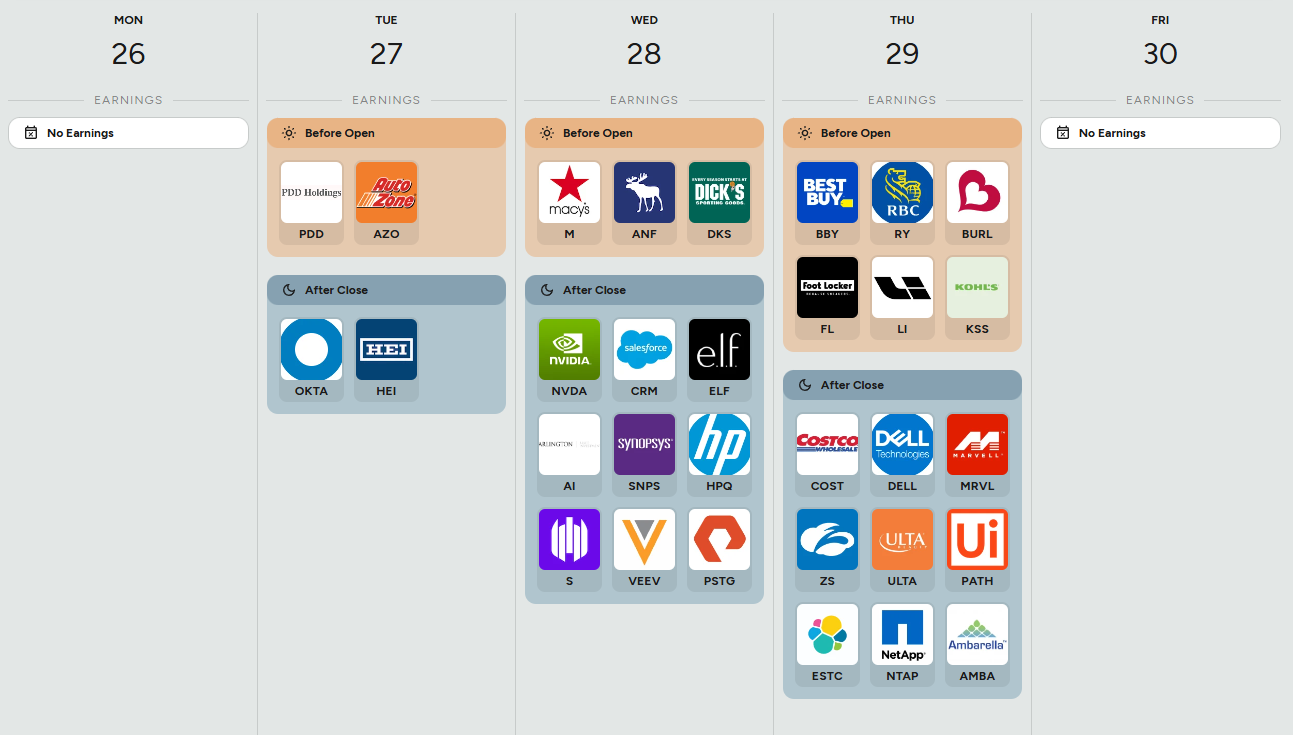 Conversely, several companies faced challenges that reflected broader economic pressures. Deckers Outdoor plummeted more than 19% after providing disappointing guidance, while Workday fell over 12% despite meeting expectations, as investors expressed concern about the company's ability to monetize its artificial intelligence investments.