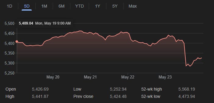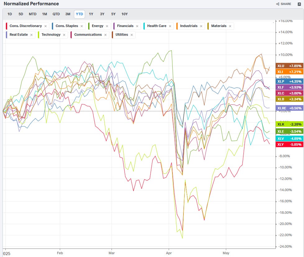 Just as markets appeared to be finding some stability amid the fiscal concerns, a familiar source of volatility reemerged: trade policy. President Trump's announcement of potential 50% tariffs on European Union goods, effective June 1st, caught markets off guard and reminded investors that trade negotiations remained fragile despite recent positive developments.