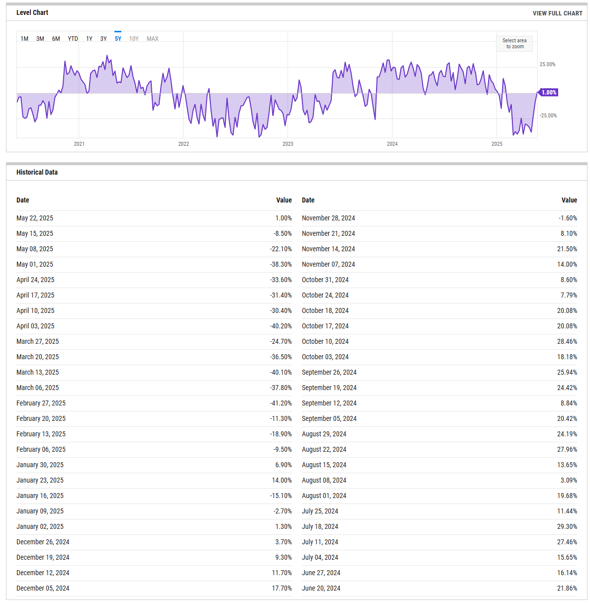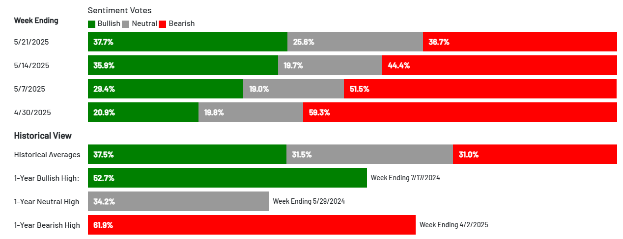 Bullish Sentiment: Reflects the percentage of investors who believe the stock market will rise in the next six months.