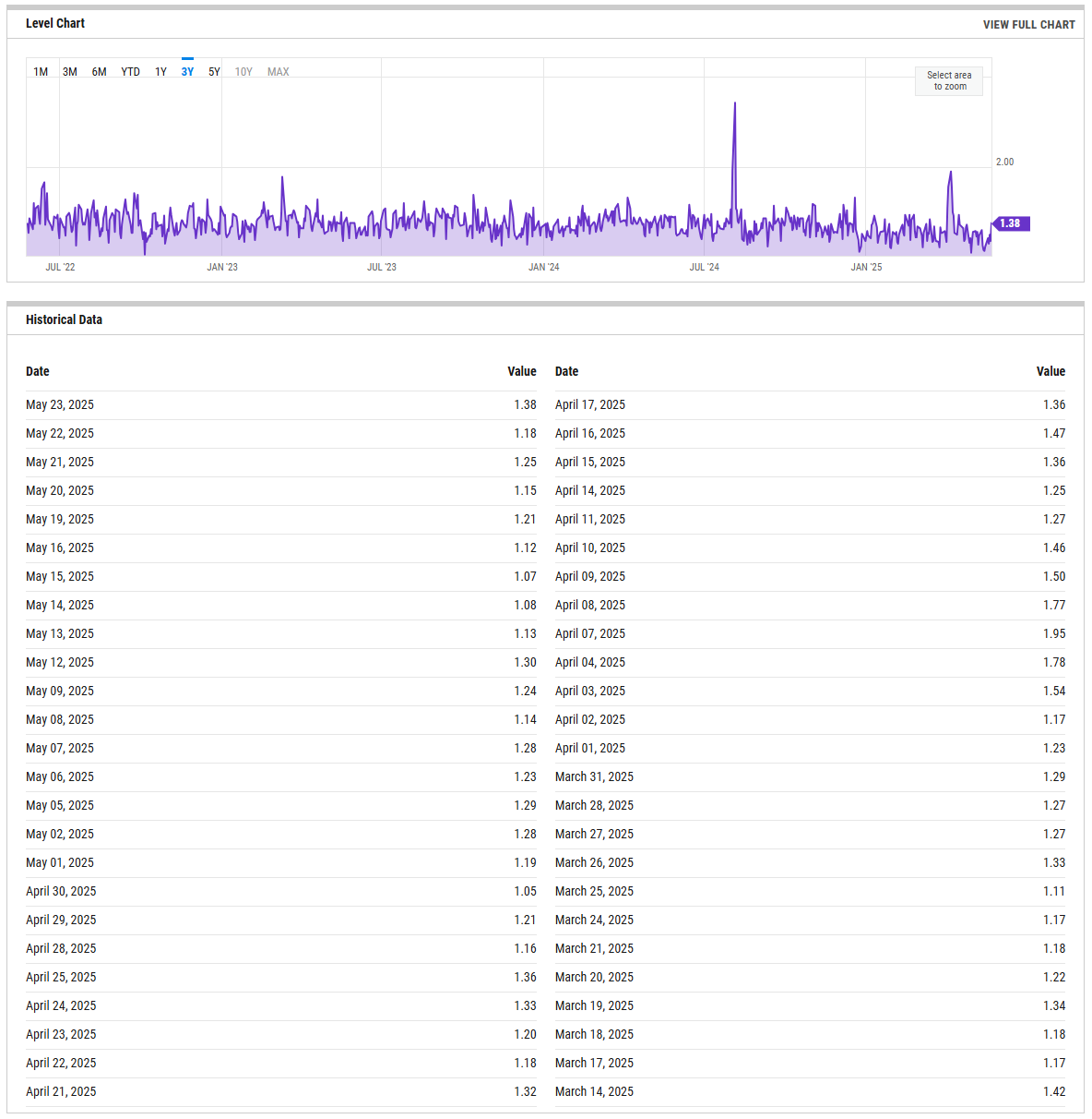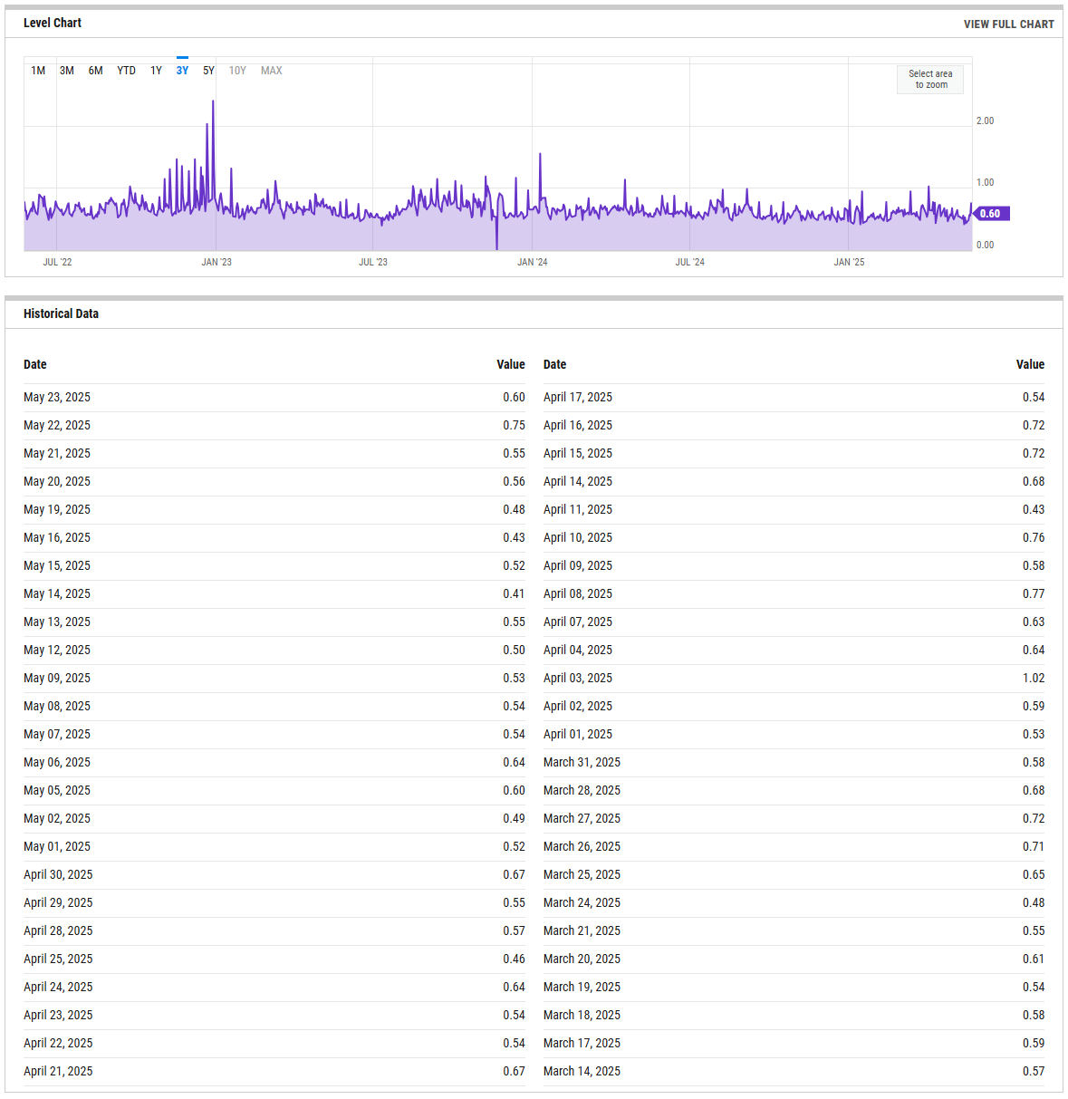 The SPX Put/Call Ratio is an indicator that is used to gauge market sentiment. This is calculated as the ratio between trading S&P 500 put options and S&P call options. A high put/call ratio can indicate fear in the markets, while a low ratio indicates confidence. For example, in 2015, the Put-Call ratio was as high as 3.77 because of market fears stemming from various global economic issues like a GDP growth slowdown in China and a Greek debt default.