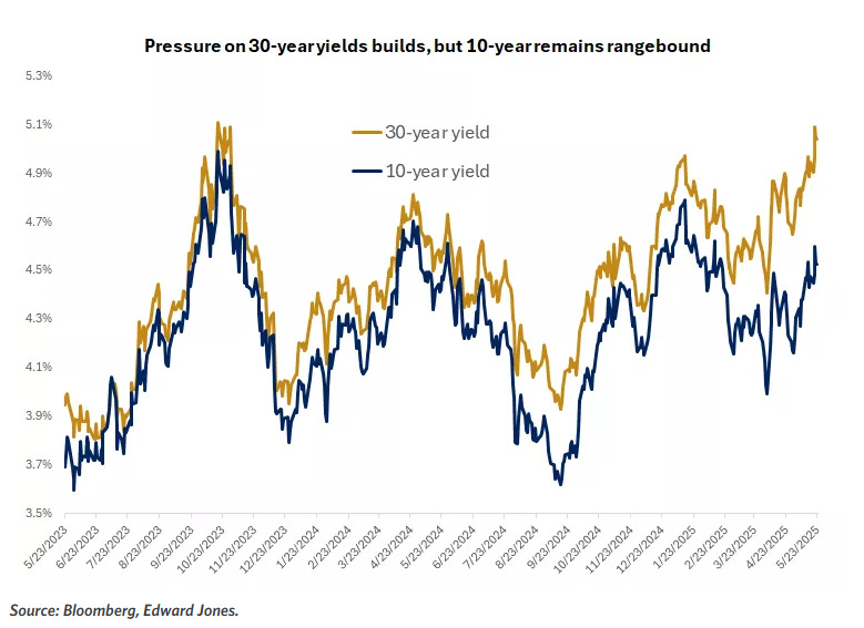 Perhaps nowhere was the week's anxiety more evident than in the Treasury market, where yields surged across the maturity spectrum in what many interpreted as a warning shot from bond vigilantes. The 10-year Treasury yield climbed above 4.5%, while the 30-year bond yield crossed the psychologically significant 5% threshold for the first time since 2007.