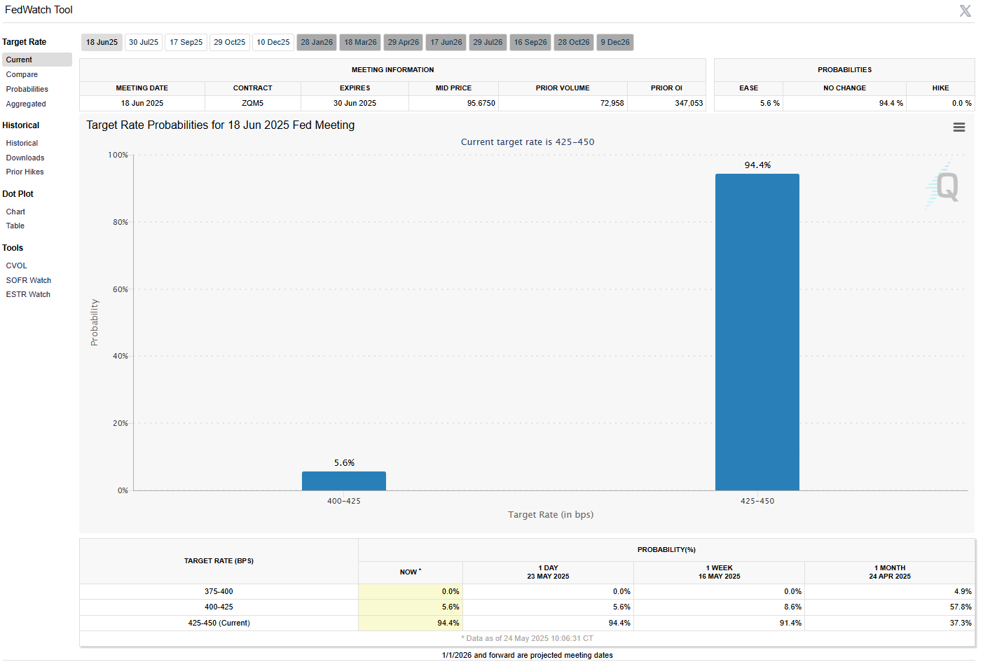 Market-based measures of Fed policy expectations shifted notably during the week, with the probability of a 25 basis point rate cut at the June 17-18 Federal Open Market Committee meeting falling to just 2%. This represented a significant change from earlier expectations and reflected the market's assessment that fiscal stimulus and trade tensions could reignite inflationary pressures.