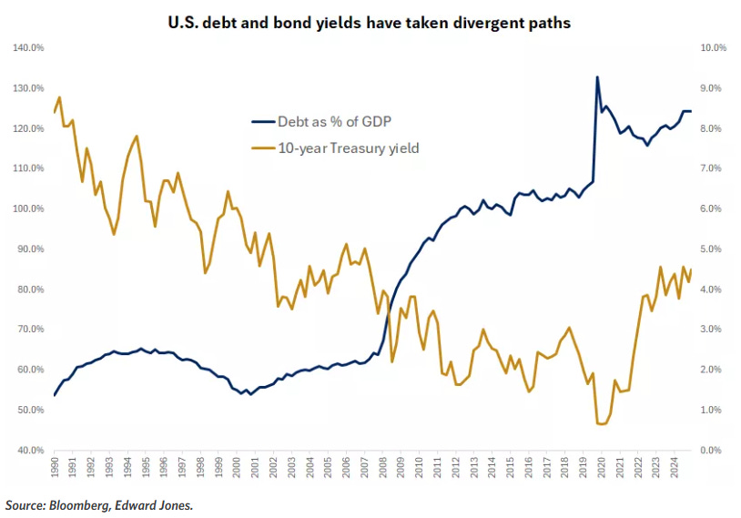 The bond market's behavior reinforced the potential attractiveness of intermediate-term fixed income investments, particularly for investors who had been maintaining elevated cash positions. While long-term bonds faced pressure from fiscal concerns, intermediate maturities offered potentially attractive risk-adjusted returns.