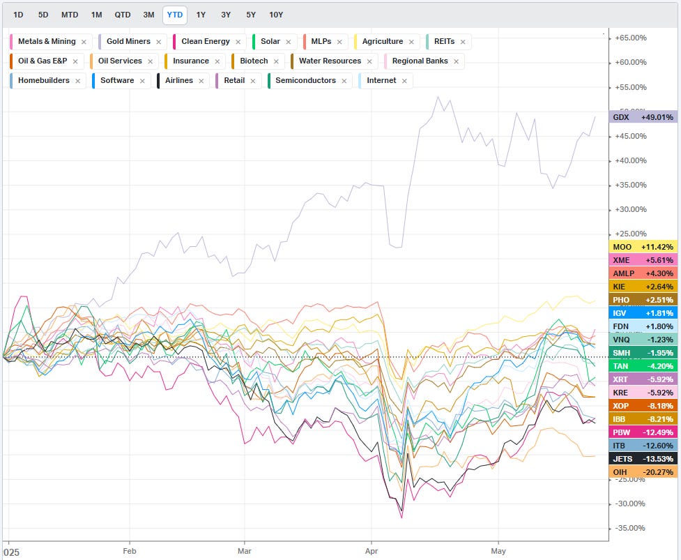 Normalized Performance By Thematics YTD (Sector, Industry, Factor, Energy, Metals, Currencies, and more): which corners of the markets are beating benchmarks, which ones are overlooked and which ones are over-crowded