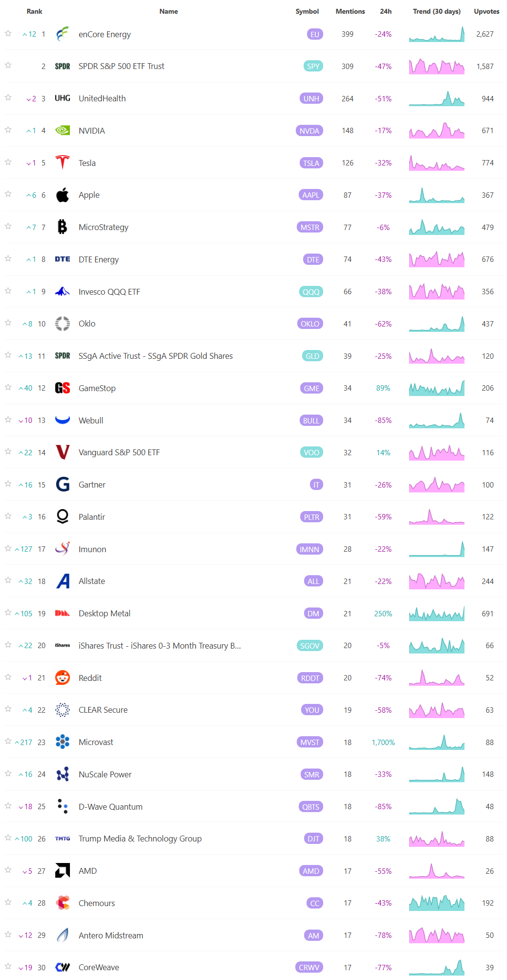 For these reasons, sentiment analysis, when combined with other tools, can provide a comprehensive view of both immediate market reactions and underlying investor attitudes, helping investors position themselves strategically across various time frames. Here are the most mentioned/discussed tickers on Reddit from some of the most active Subreddits for trading: